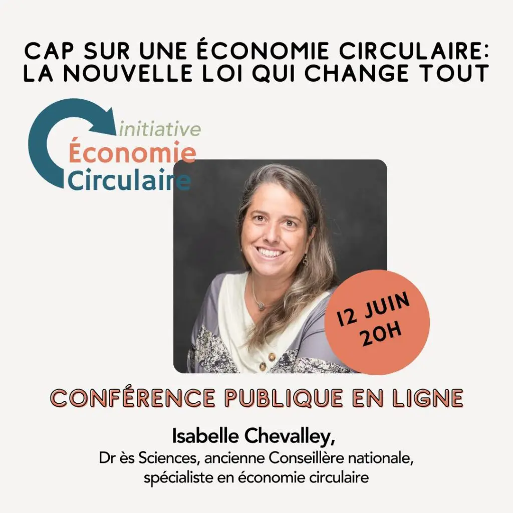 Rejoignez-nous pour un webinaire exclusif animé par Isabelle Chevalley, ancienne conseillère nationale et experte en durabilité, autour des dernières modifications de la Loi fédérale sur la protection de l’environnement (LPE) et de leurs impacts concrets sur l’économie circulaire en Suisse. Face à l’urgence climatique et à l’épuisement des ressources, l’économie circulaire s’impose comme un modèle […]
